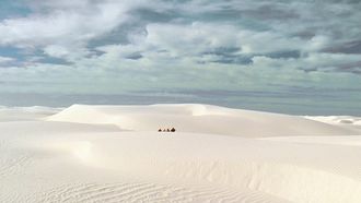 The planet is a vast desert, with some mountains in the background. The atmosphere contains oxygen, nitrogen, small signs of carbon dioxide, allowing to breath here, yet the weather is quite dry. The planet is barely habitable and the omnipresent sun can provoque heavy sunbursts on the skin after less than a day. There is a place where one can find a dry lake (SGU: "Air", Part 2, "Air", Part 3).